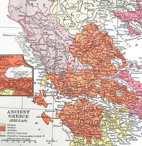 Map 300 BC Ancient Greece Hellas 1938 Atlas Print Dorian Ionian Aeolian DWU7