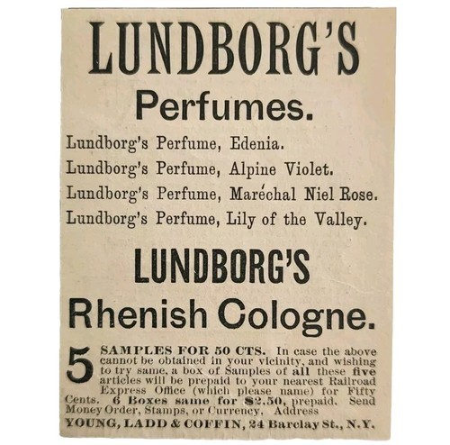Lundborg's Perfume Colognes 1885 Advertisement Victorian Beauty ADBN1A17