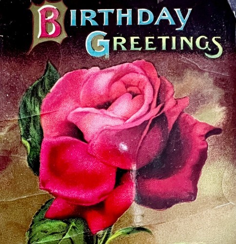Happy Birthday Greeting Postcard 1910s Gel Coat Red Rose Germany PCBG3D