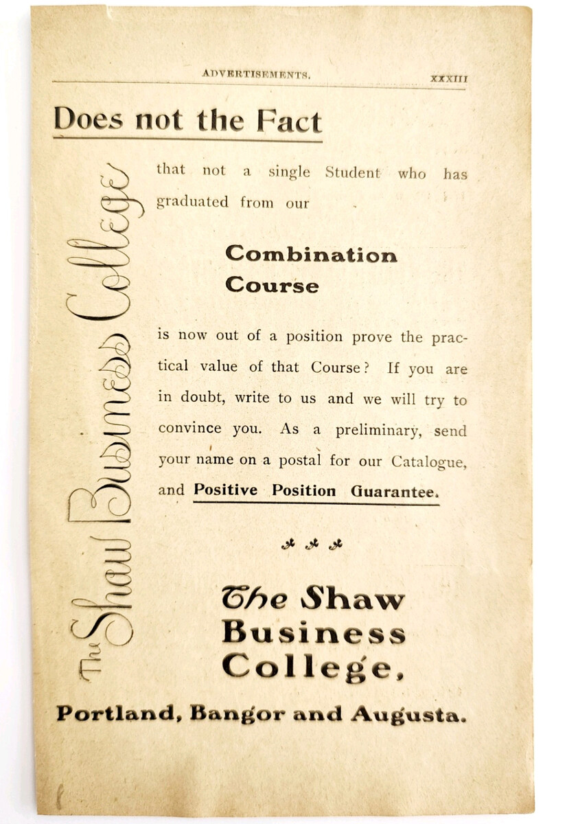 1906 Shaw Business College Advertisement Maine Portland Bangor Augusta E17H