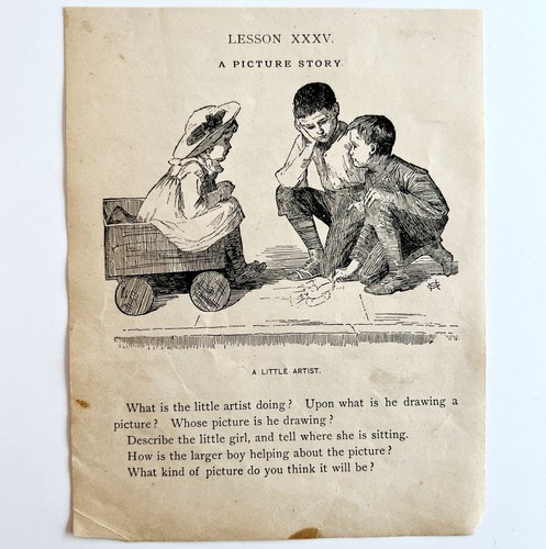 1878 Print A Little Artist Lessons In English 6 x 4.75" Antique