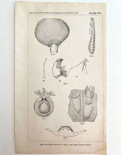 Southern Buffalo & Turkey Gnats Insect Victorian 1887 Art Print Entomology DWT9B