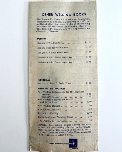 1962 Arc Welding Lincoln Buying Guide Booklet Manual Ephemera Order Form