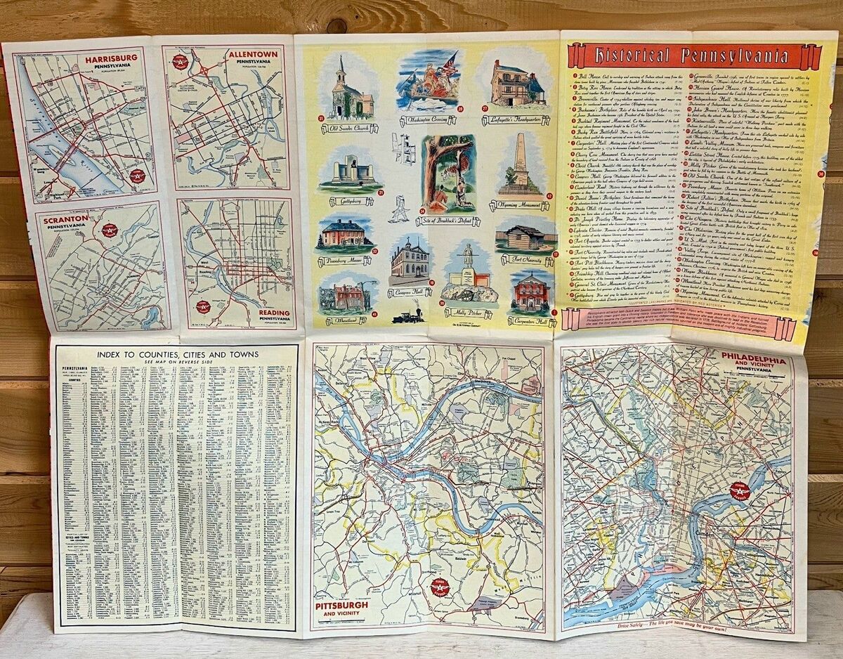 Vintage Flying A Road Map 1956 Pennsylvania