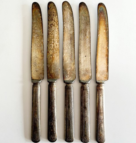 Silverplate English Plate Flatware Lot of 5 Butter Knives Antique c1930s-40 C98