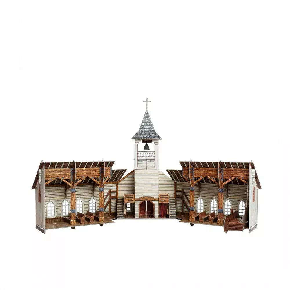 3D Cardboard Church Puzzle Wild West DIY Building Model for Collectors and Kids