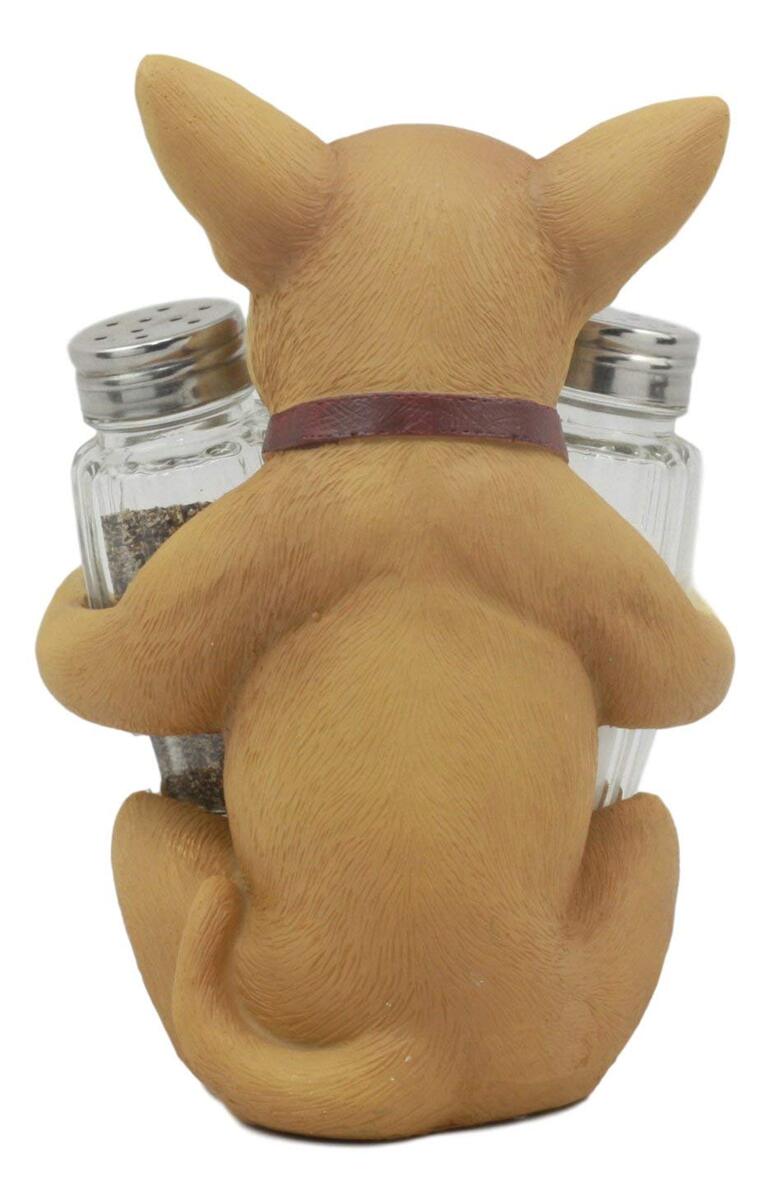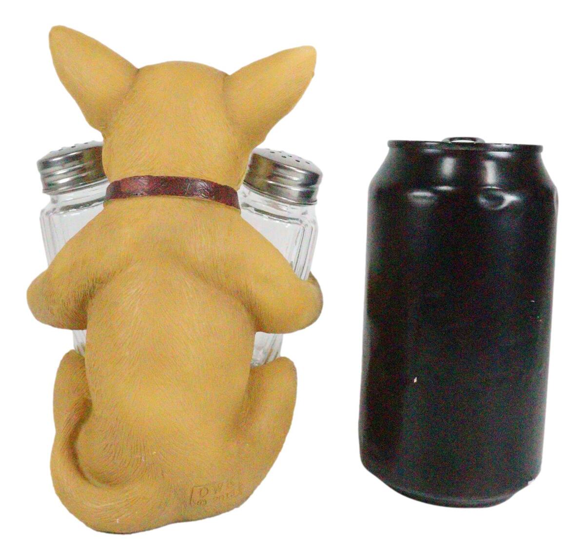 Ebros Teacup Tan Chihuahua Puppy Salt And Pepper Shakers Holder Set 6.25"H