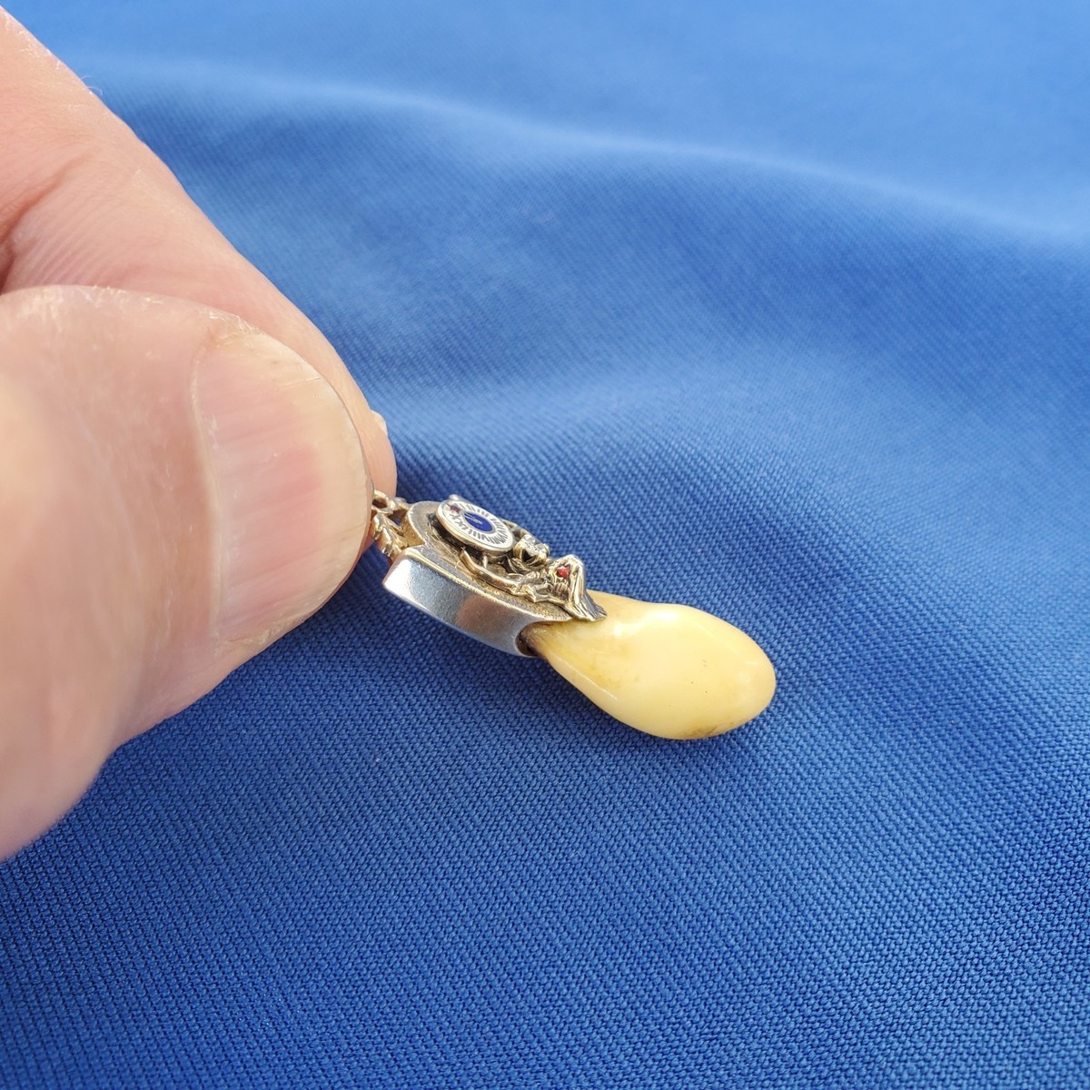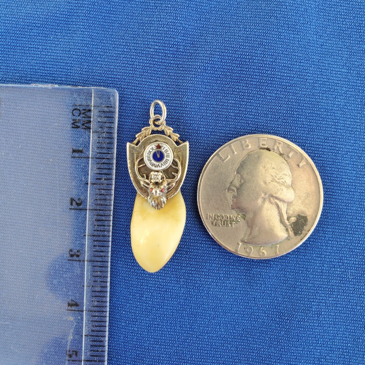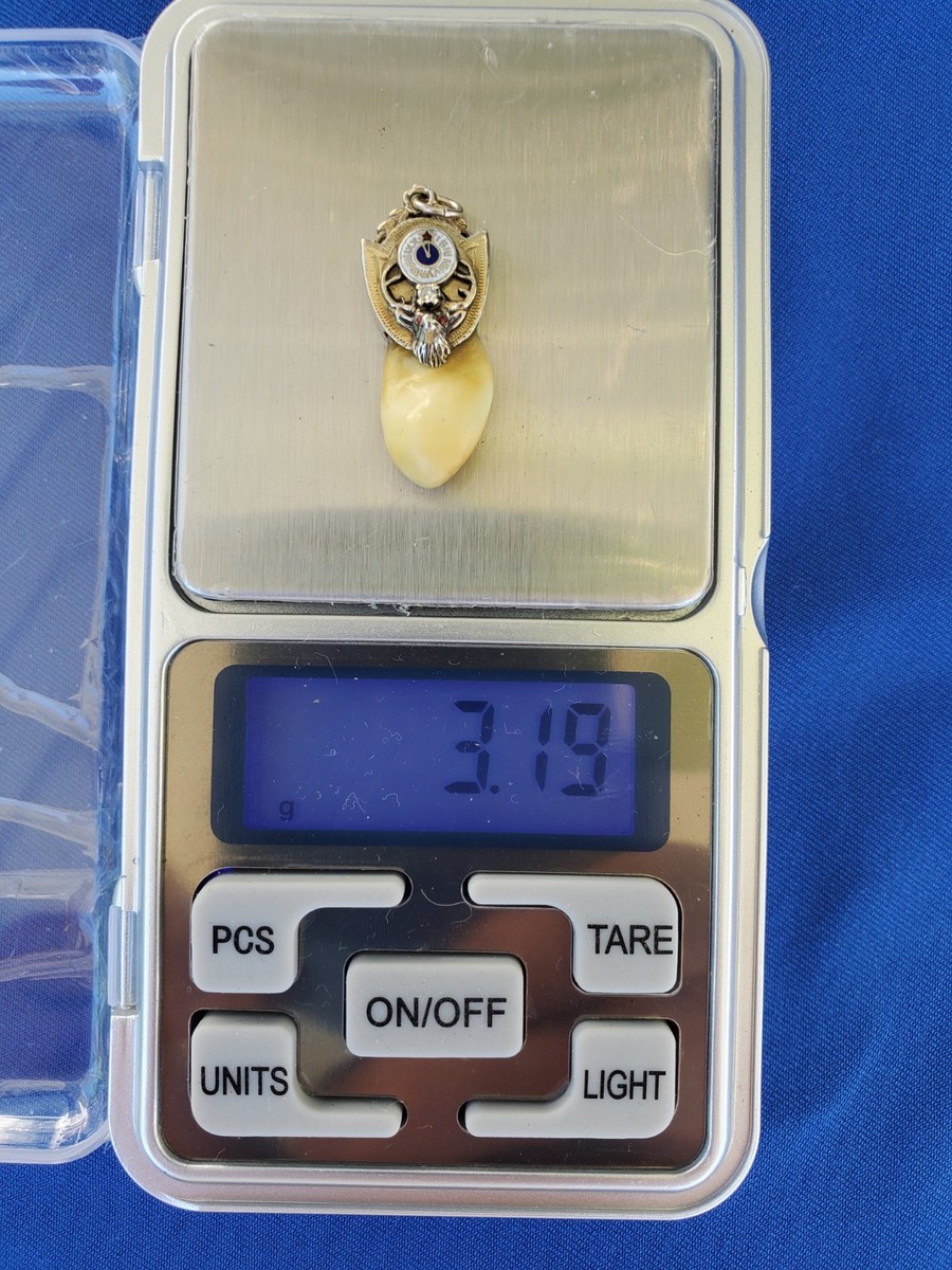 Antique BPOE 14K WHITE Gold Diamond Elk’s Tooth Watch Fob Pendant Red Eyes 3.19g