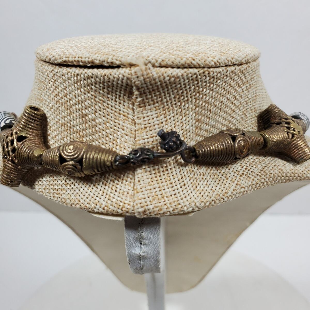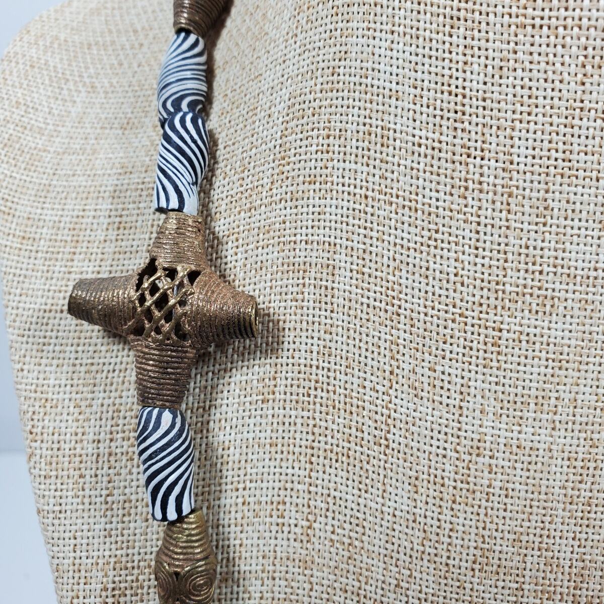 Vintage Abstract Curvilinear Motif Necklace 26 Inch Spiral Brass & Bead