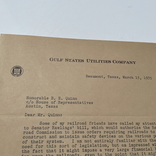 Gulf States Utilities Company Letter 1935 Signed Beaumont TX East Texas
