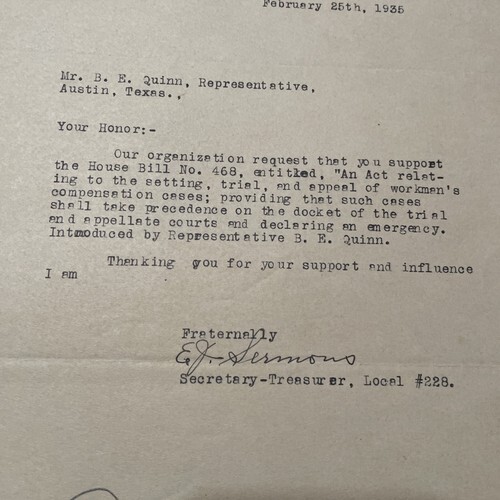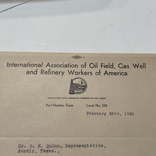 International Association of Oil Field Gas Well And Refinery Workers Letter 1935.