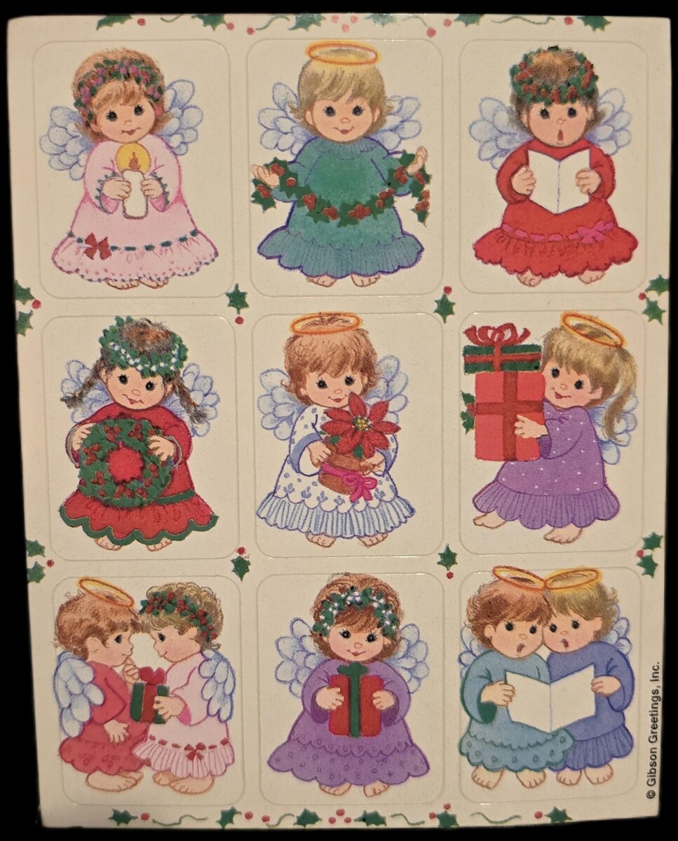 Vintage Sticker Lot Xmas 5 Sheets Gibson Hallmark, American Greetings
