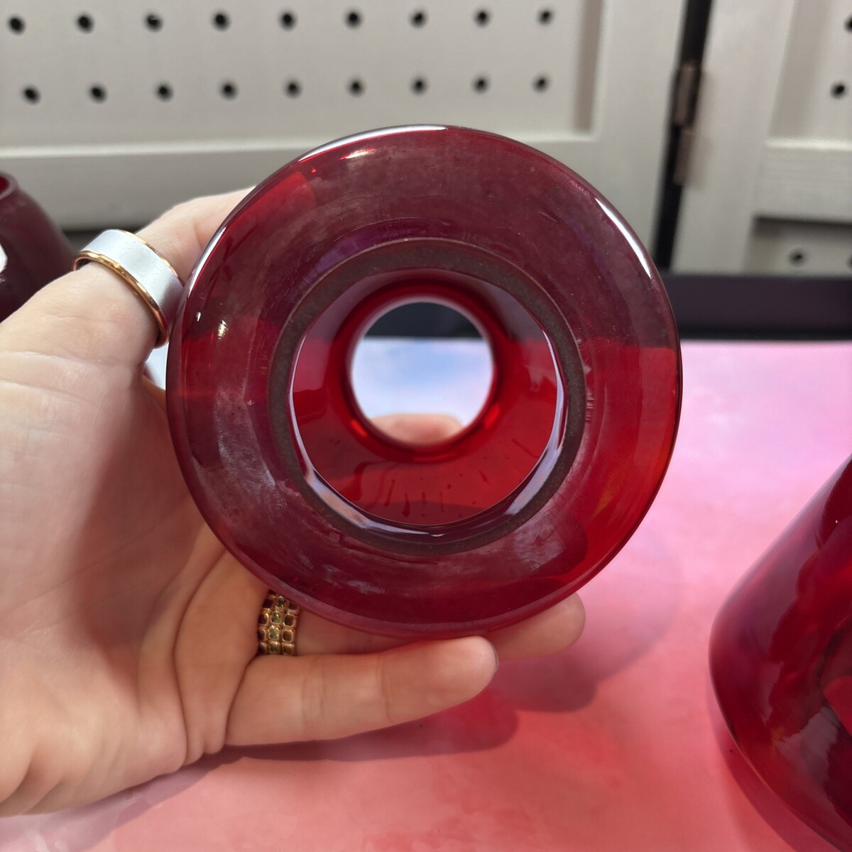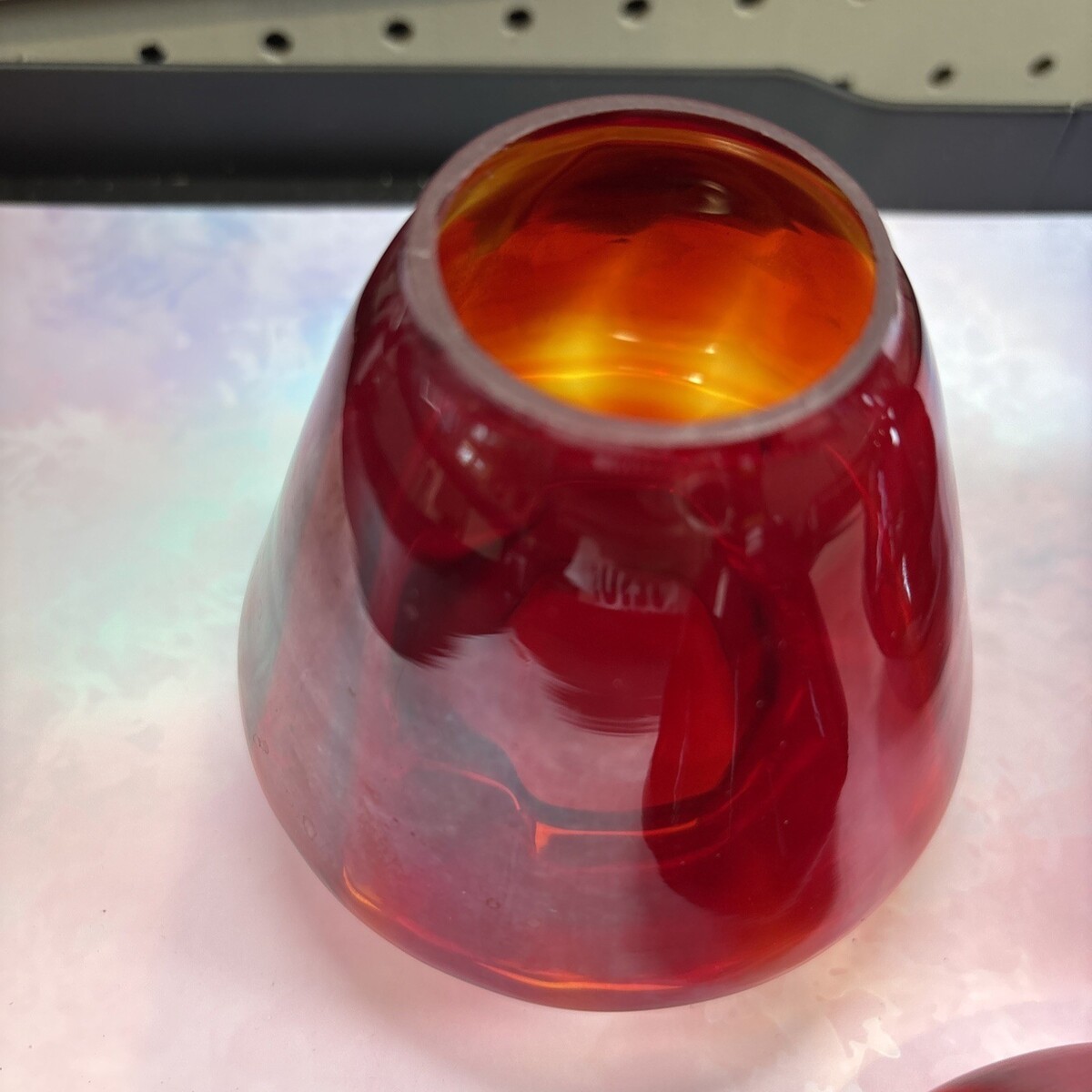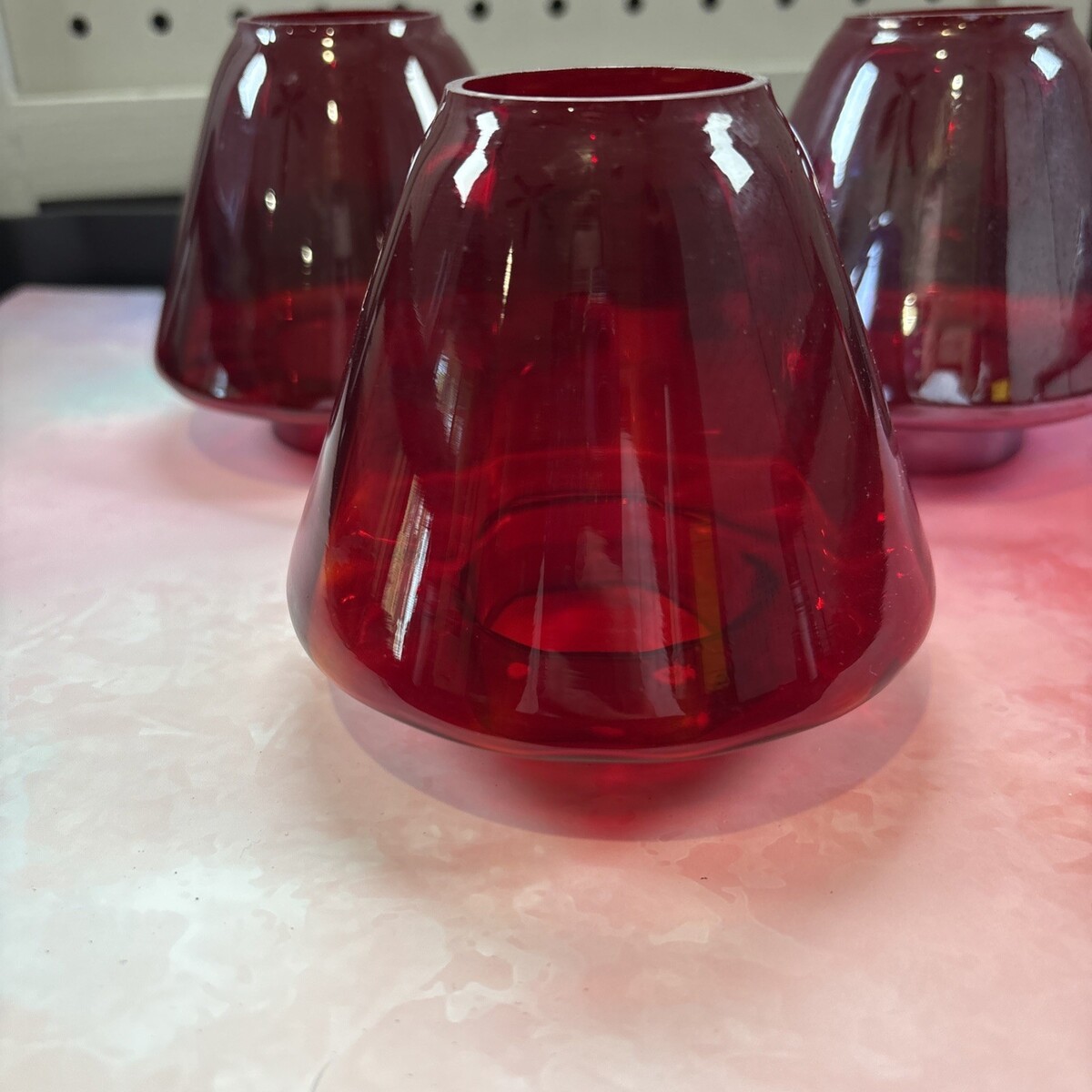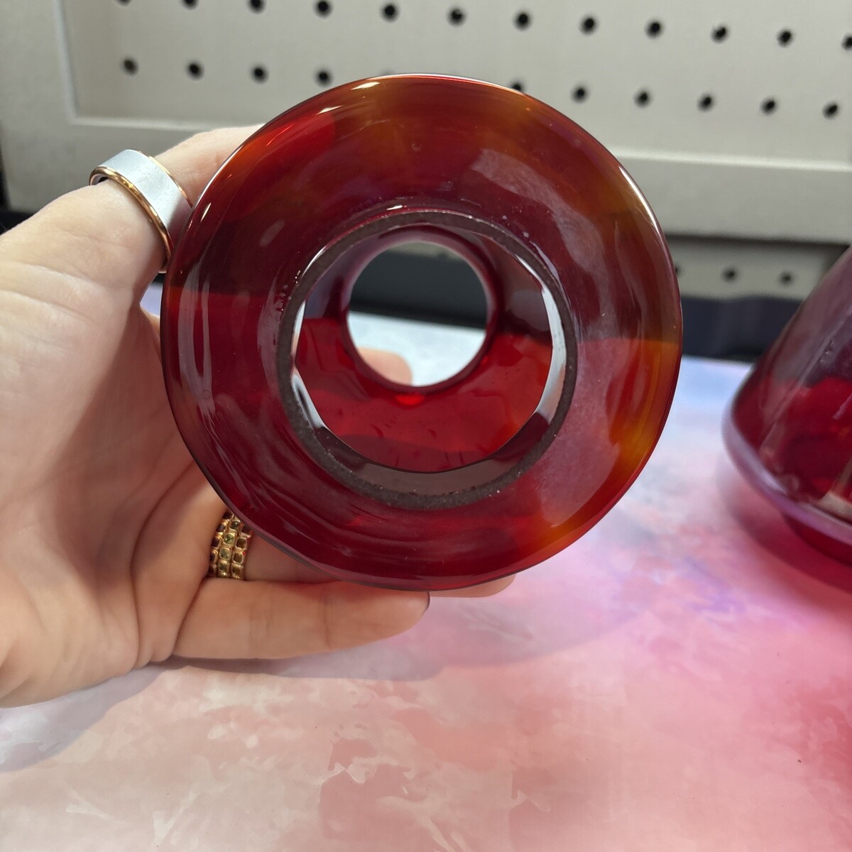 Vintage Small Red Glass Candle Shade Chimneys Toppers 2" O.D. Fitter-set Of 3