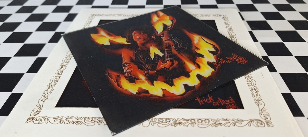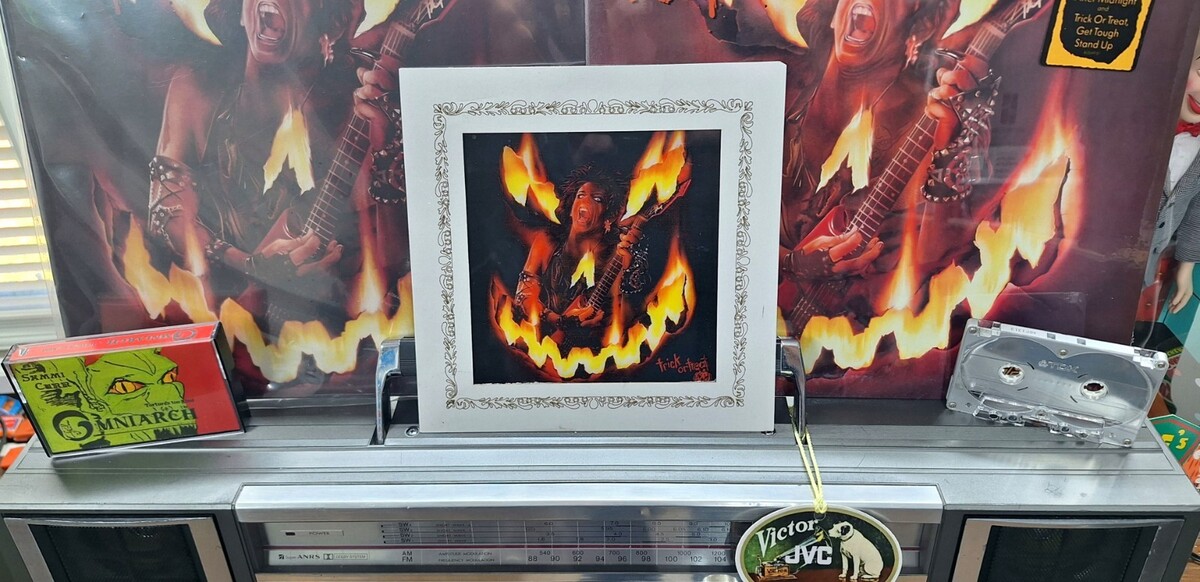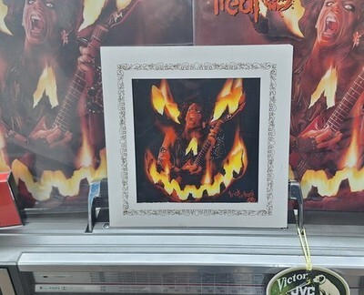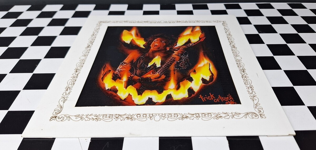 The product is 8" x 8" featuring Sammi Curr from the 1986 hit movie "Trick or Treat." The design showcases an iconic image of Sammi Curr, making it a desirable collectible for fans of the movie or those interested in movie posters.