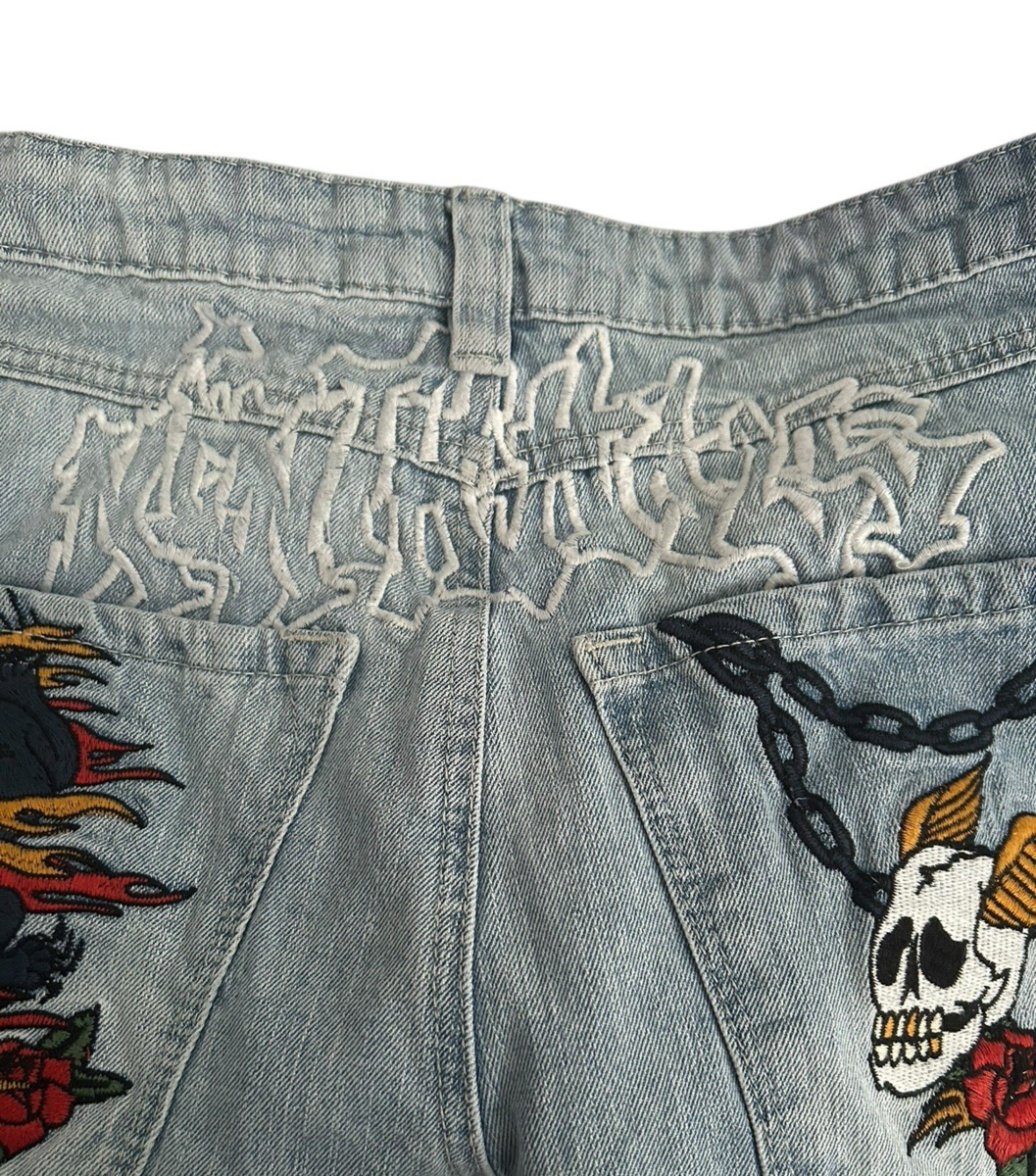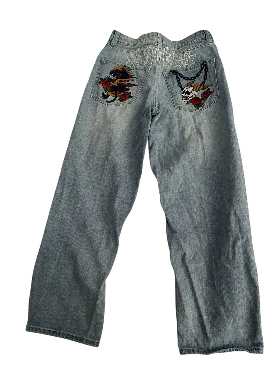 Y2K Ninth Hall Ambush Jeans Men 30x28 (Fits 29x27) Blue Denim Dragon Skull Baggy