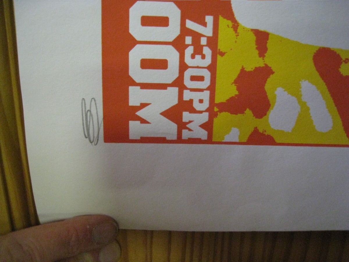 Questo poster e di circa 18 pollici per 24 pollici. Questo poster ha pieghe e cutanei e uno strappo da 1/4 di pollice. E firmato e numerato 58/60. Questo e firmato dall'artista Sean Carroll. Questo poster verra spedito in un tubo di cartone duro.