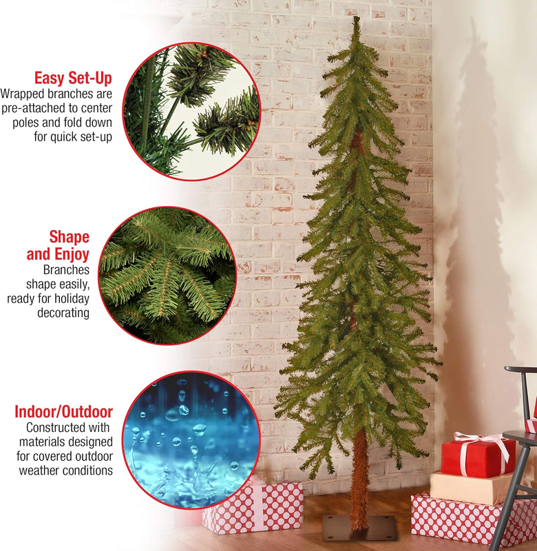 The Artificial Hickory Cedar Christmas Tree goes up fast, leaving more time for holiday cheer. The tree decor is designed with a fire-resistant and non-allergenic material, and makes a great accent piece wherever it is placed. A diameter of 24 inches at the base, includes assembly instructions. Lights, decorations and ornaments are not included.