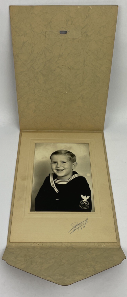 Vintage Antique Portrait Photo Little Sailor Boy 6.5" x 4.5" In Frame Card 7.25" x 10.25" Black White