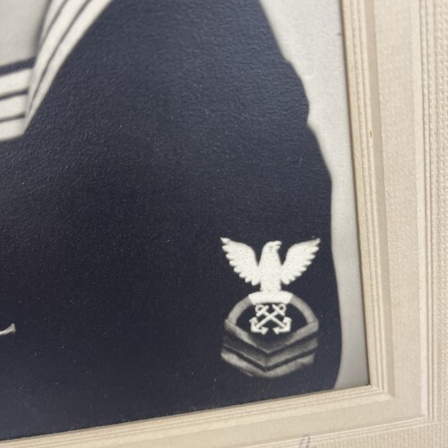 Vintage Antique Portrait Photo Little Sailor Boy 6.5" x 4.5" In Frame Card B&W