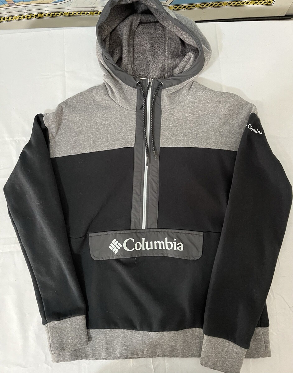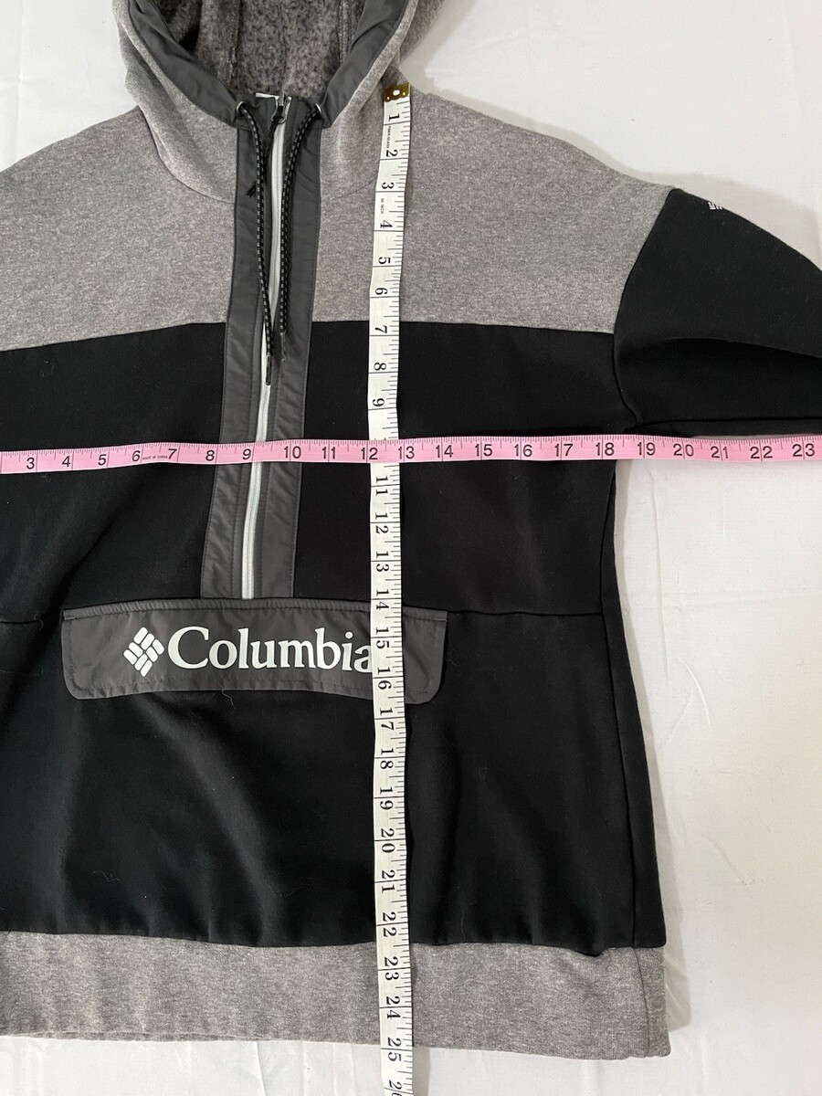 Columbia 3/4 Zip Pullover Hoodie Womens Small Front Snap Close Pocket Grey Black