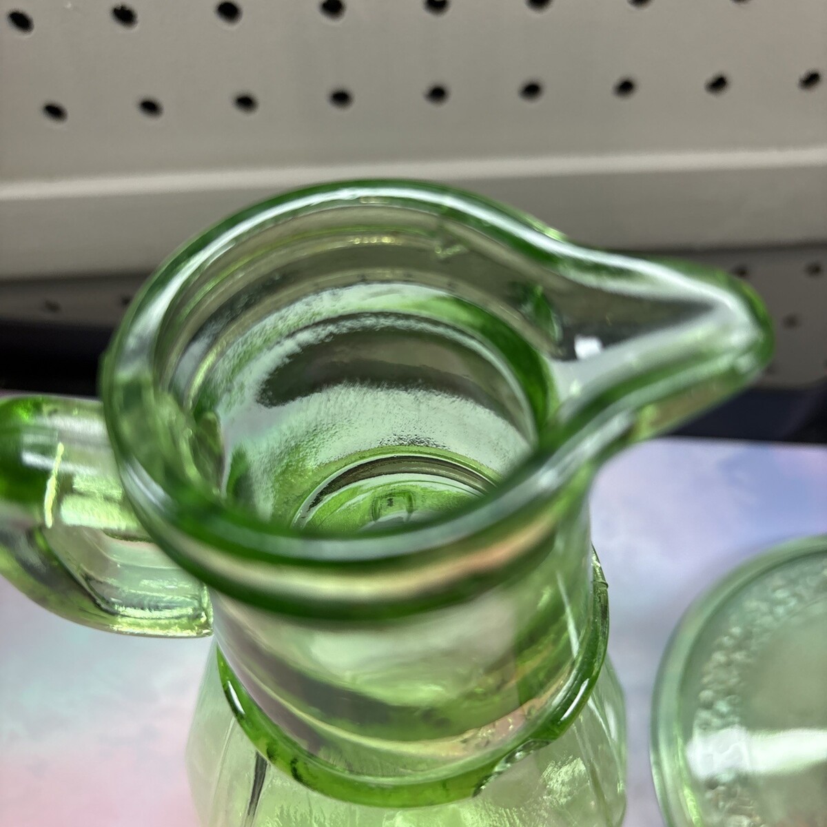 HAZEL-ATLAS GREEN DEPRESSION GLASS SYRUP PITCHER NO TOP 6 1/8"-READ!!