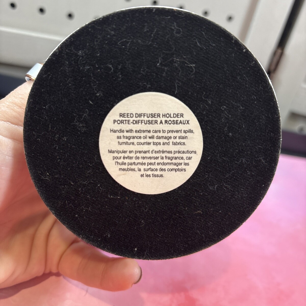 This Pier 1 Metal Diffuser Holder is a vintage/retro style reed holder made of metal, measuring 7 inches in height. The silver tone color adds a touch of elegance to any room. Perfect for holding reeds and diffusers, this stylish piece adds a touch of charm to your home decor. Does have a few spots around the rim where it looks like it is starting to rust.