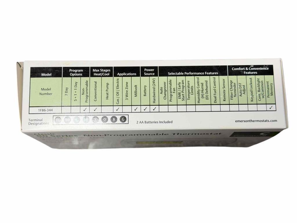 NEW EMERSON WHITE RODGERS CLASSIC 80 SERIES NON PROGRAMMABLE THERMOSTAT. 1 HEAT 1 COOL. 1F86-344.