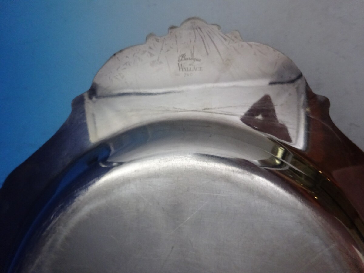 Baroque by Wallace silverplate large meat platter marked #260. This platter measures 22" in length by 15 1/4". This pattern was made by Wallace to use alongside Grande Baroque sterling flatware. It is not monogrammed and is in good estate condition, with some scratches as shown in the photos. Lovely piece!