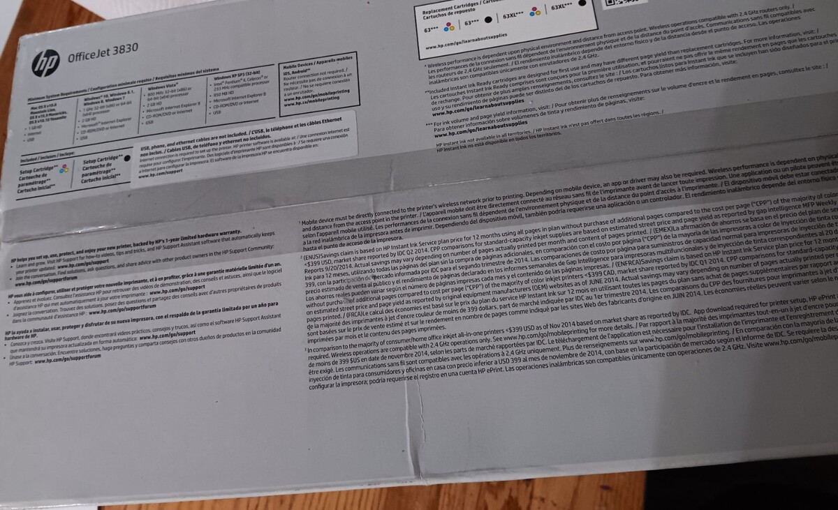 The HP OfficeJet 3830 is an all-in-one printer with scanning capabilities, ideal for home or office use. It supports color scanning with a resolution of 1200x1200 DPI and has a 24-bit color depth. With a wireless connectivity option, it allows for easy printing and scanning from various devices. The compact design includes dimensions of 8.54 inches in height and 17.72 inches in width, making it suitable for smaller spaces. This product from the HP Officejet product line is a reliable choice for those in need of a versatile printing solution.