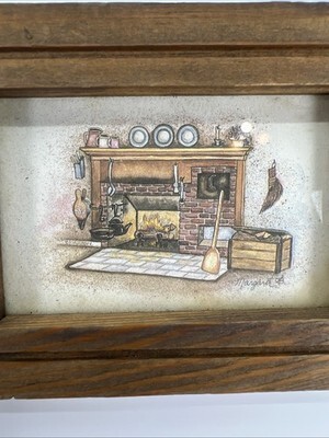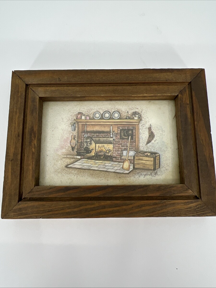 Vintage Miniature Framed Art Print Country Cottage Core Theme 4x5”