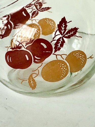 Crafted with a nod to nostalgia, this Vintage Tilt Ball Pitcher is a delightful addition to any glassware collection. It showcases a classic citrus pattern with a charming fruit theme, ideal for those who appreciate the elegance of yesteryear. The pitcher, made from high-quality glass, boasts a ribbed neck and a convenient handle, ensuring both aesthetic appeal and practicality.