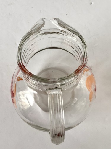 Vintage Tilt Ball Pitcher W/ Ice Lip Ribbed Neck Handle Orange Juice Apple Glass