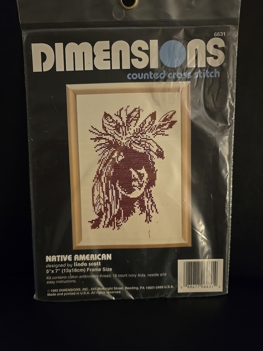 Vtg 1992 Dimensions Native American Indian Feathers Counted Cross Stitch Kit