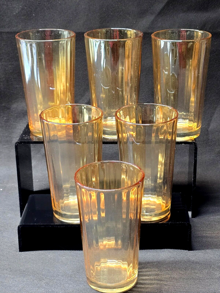 Vintage JEANNETTE Optic Panel DEWDROP MARIGOLD 7-Piece Set - Pitcher & 6 Glasses