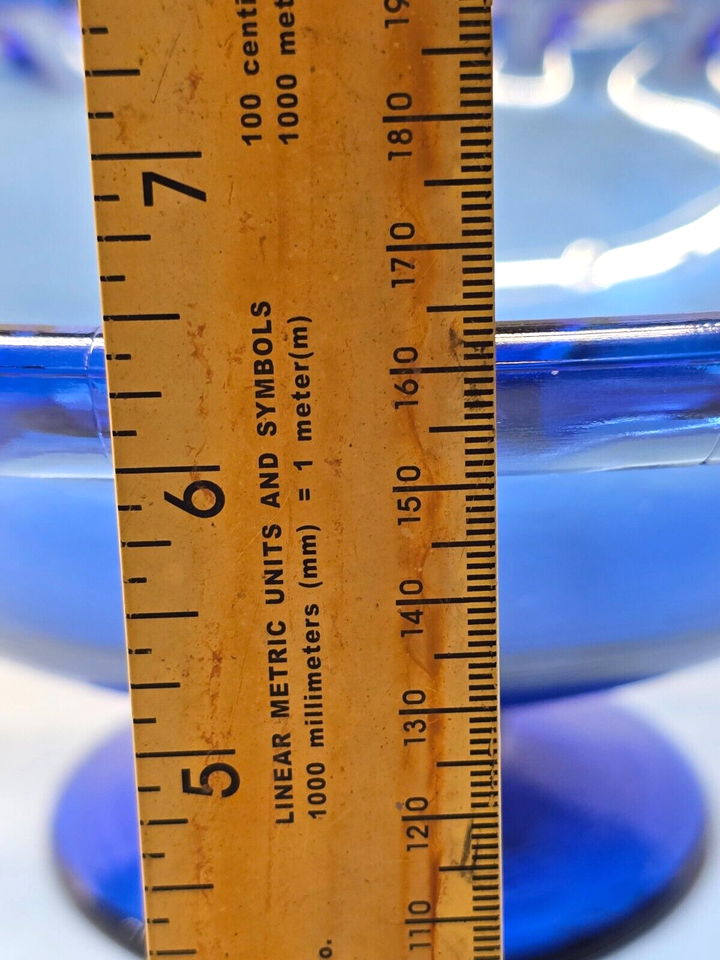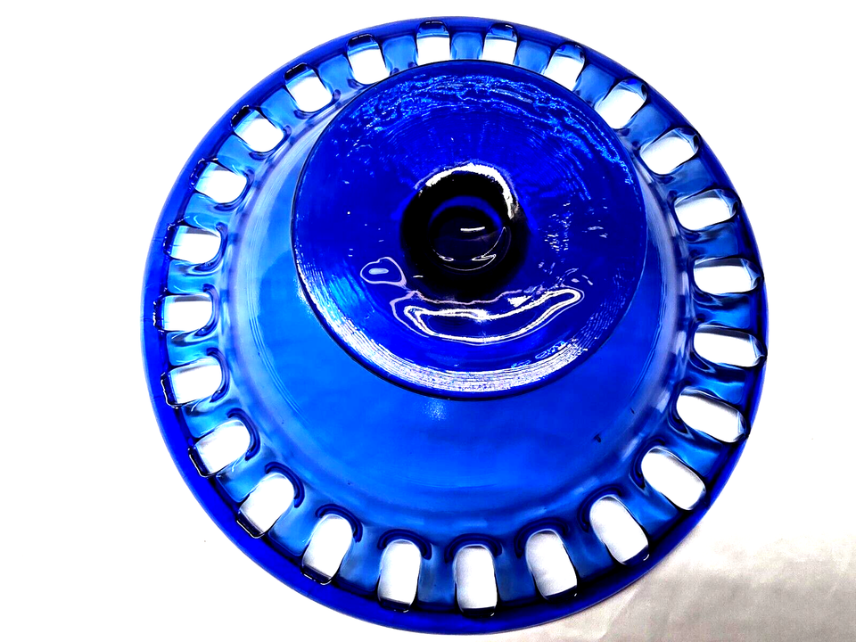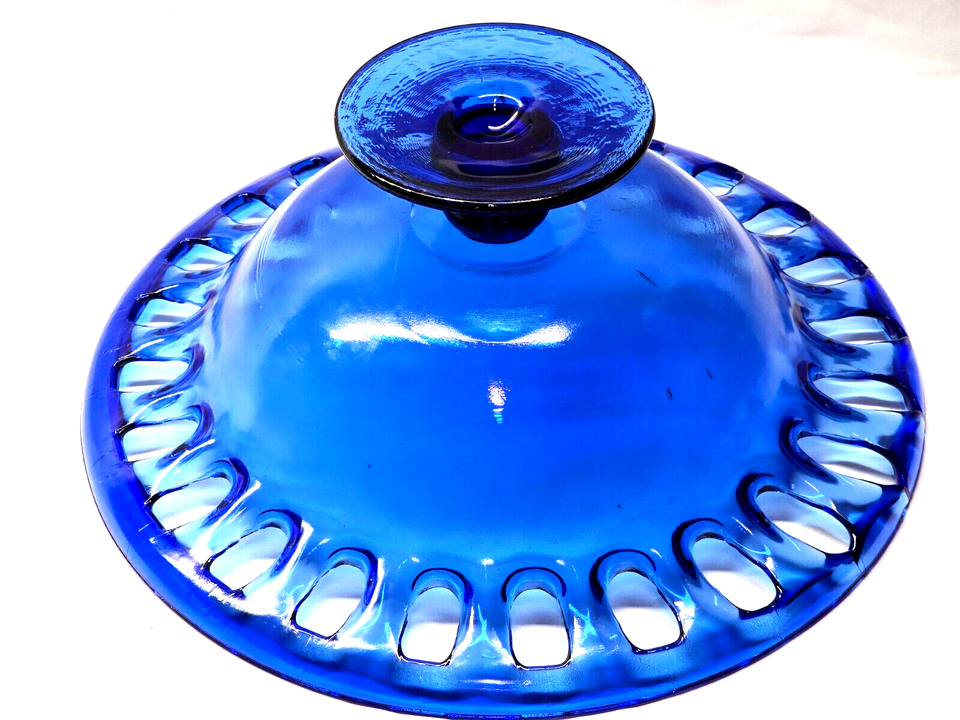 HUGE Czech Art Glass 16" Footed Bowl - Cobalt Blue Closed Colonial Lace Cutouts