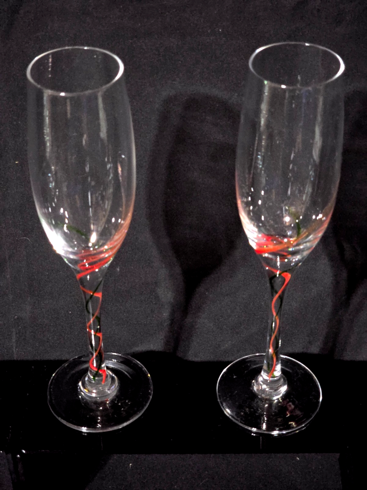 Nice pair of Holiday Ribbon flutes by Lenox in excellent condition. Great color/clarity,