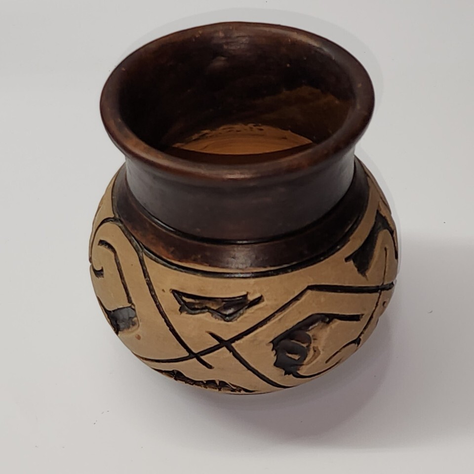 Vintage AMERICAN INDIAN Art Pottery Vase Pitcher Jug - UNKNOWN MAKER - Set Of 2