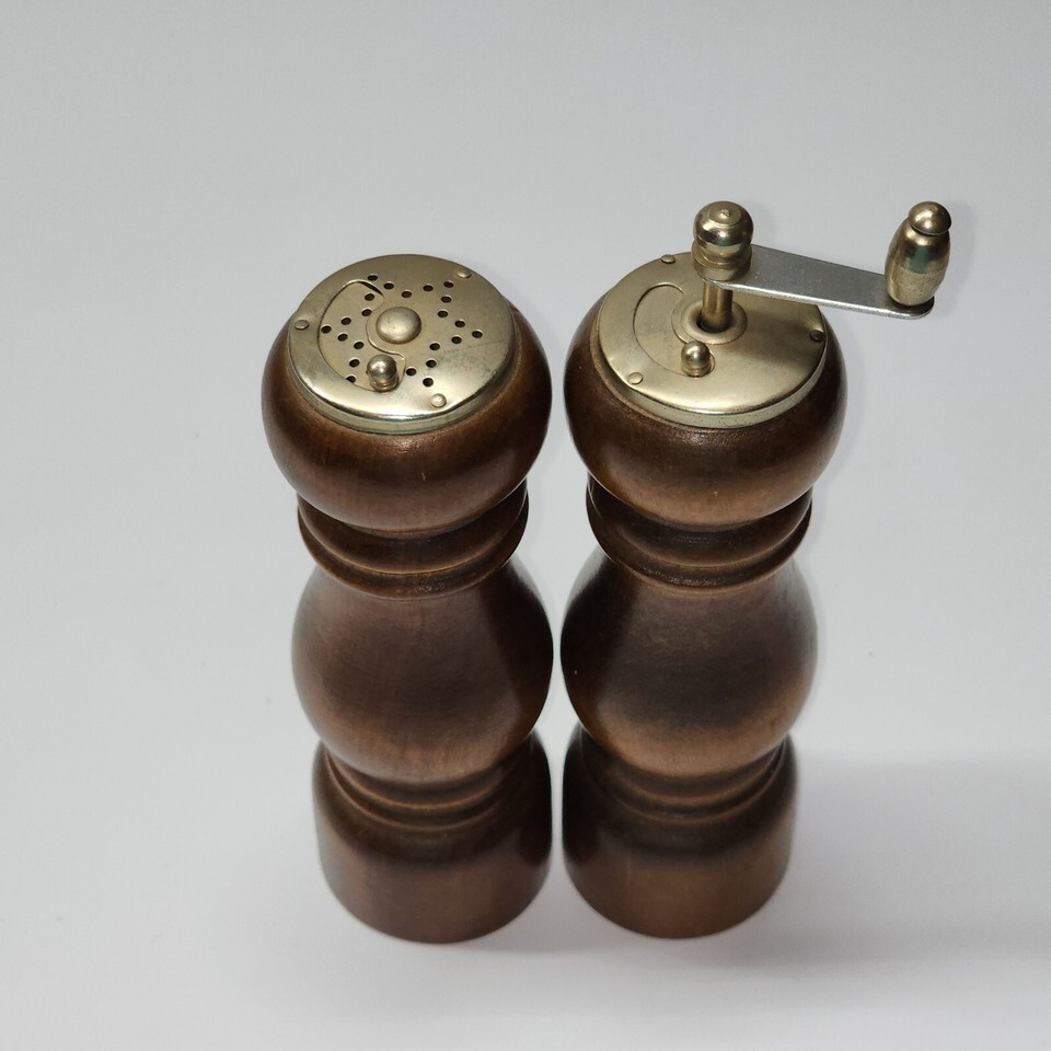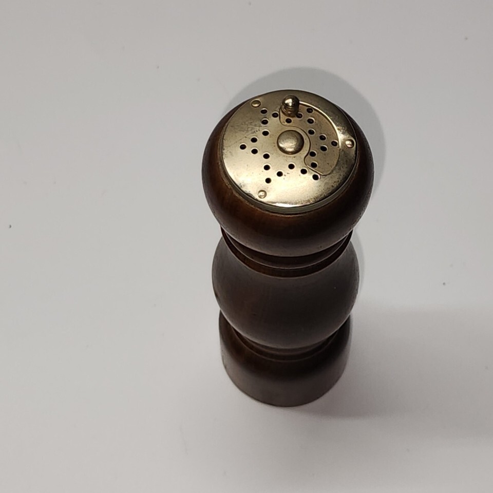 shaker, pepper mill, and set of 4 wood napkin rings in mint condition, no