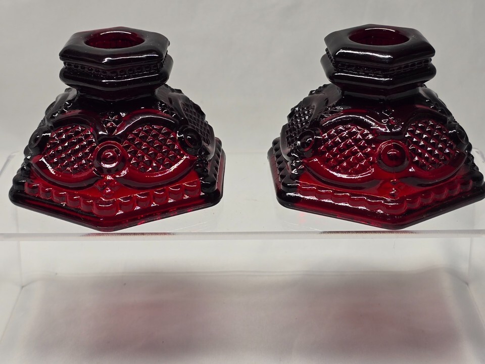 Avon Cape Cod Ruby single light candlestick holders by Wheaton Glass in excellent condition. Great color, no evidence of damage.