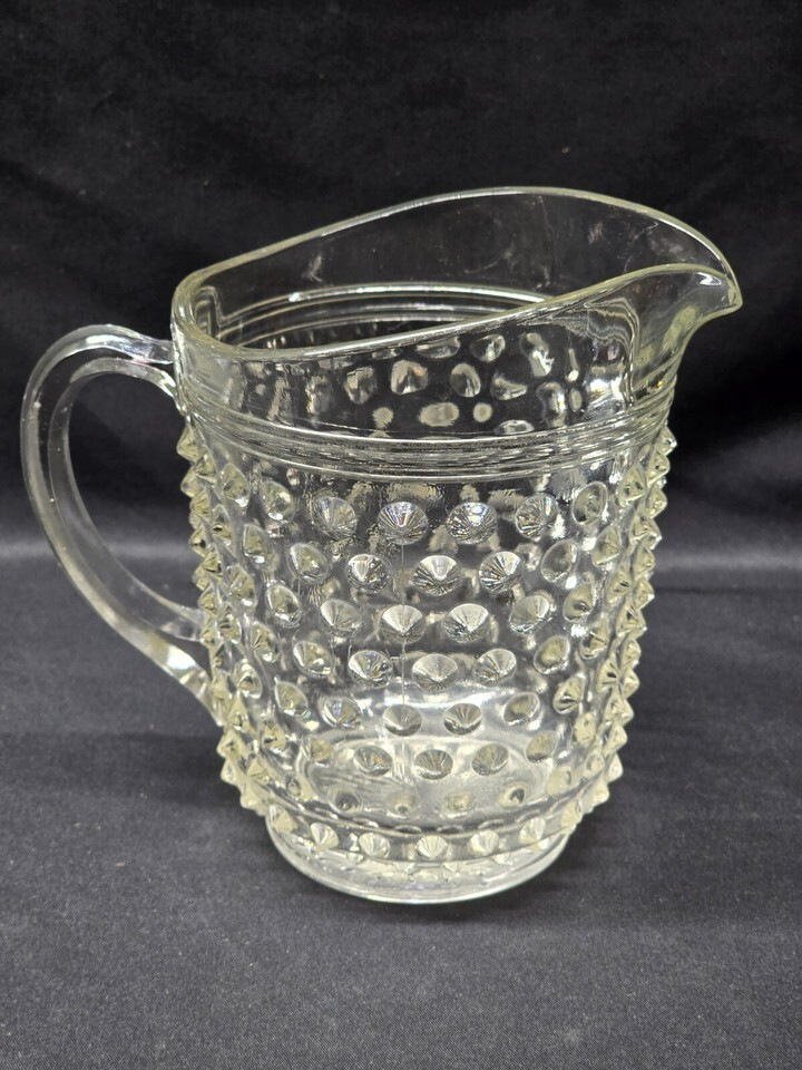 Vintage ANCHOR HOCKING 8" Pitcher HOBNAIL CLEAR 18 Ounce - Made In USA 1934-1936