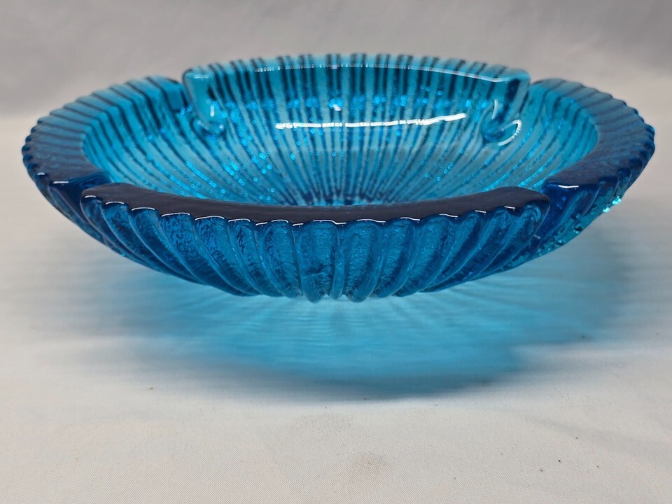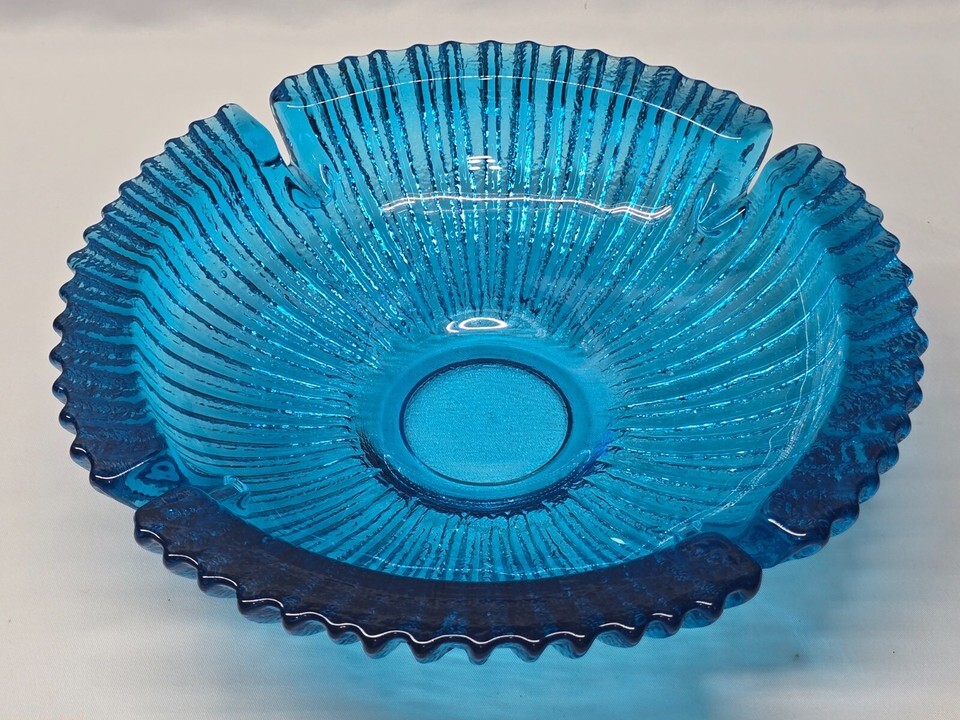 Vintage Mid Century BLENKO 624 Sunburst Art Glass Ashtray Blue Turquoise - MINT