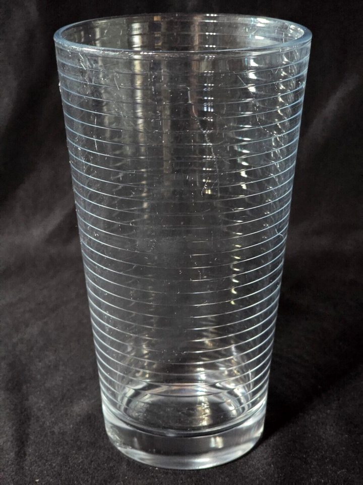 CRATE & BARREL 6" Iced Tea Beverage Cooler Glass RINGS Pattern - Set Of 4