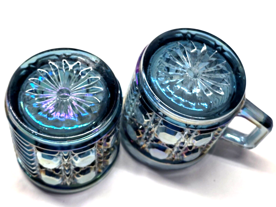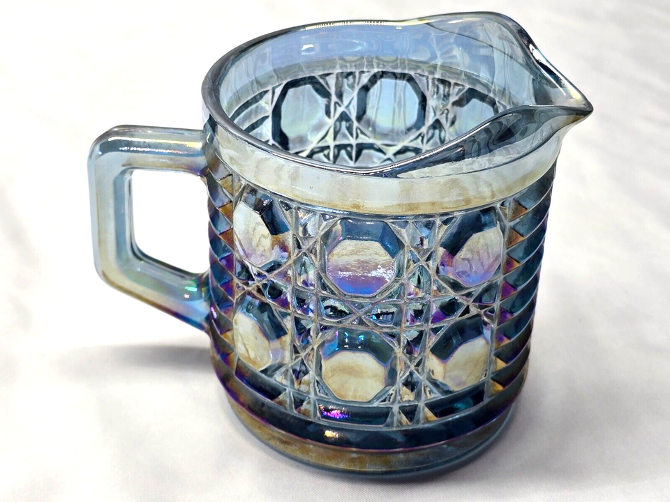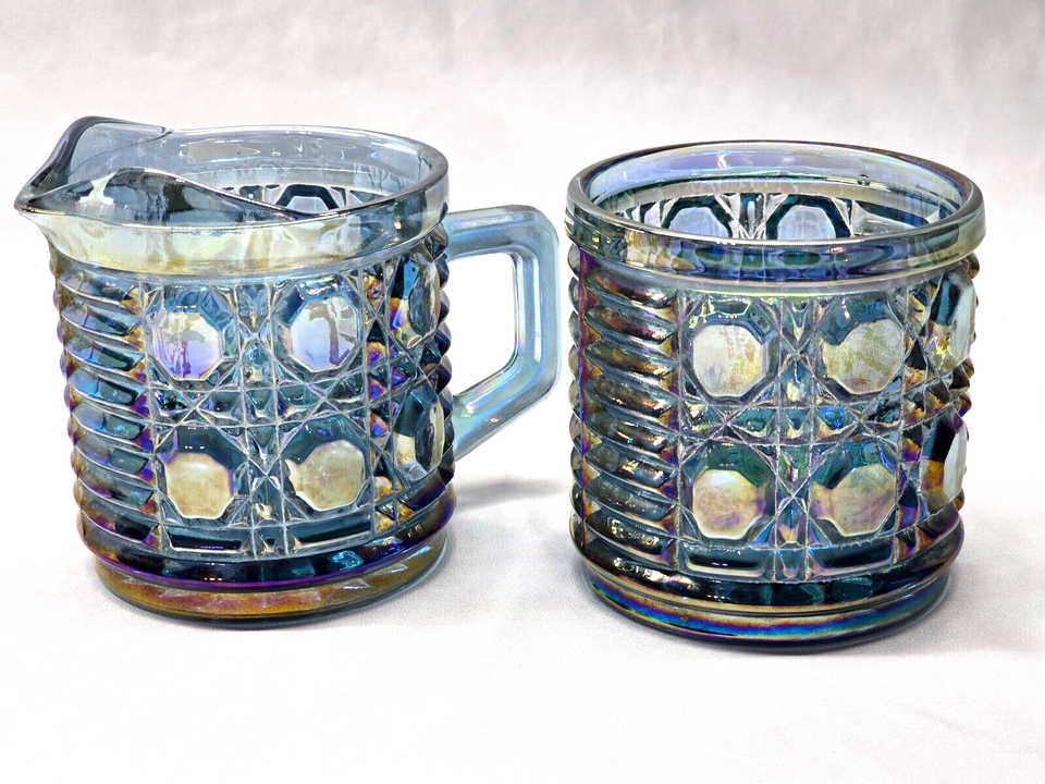 Vintage INDIANA GLASS Creamer & Open Sugar Bowl WINDSOR BLUE Carnival Glass