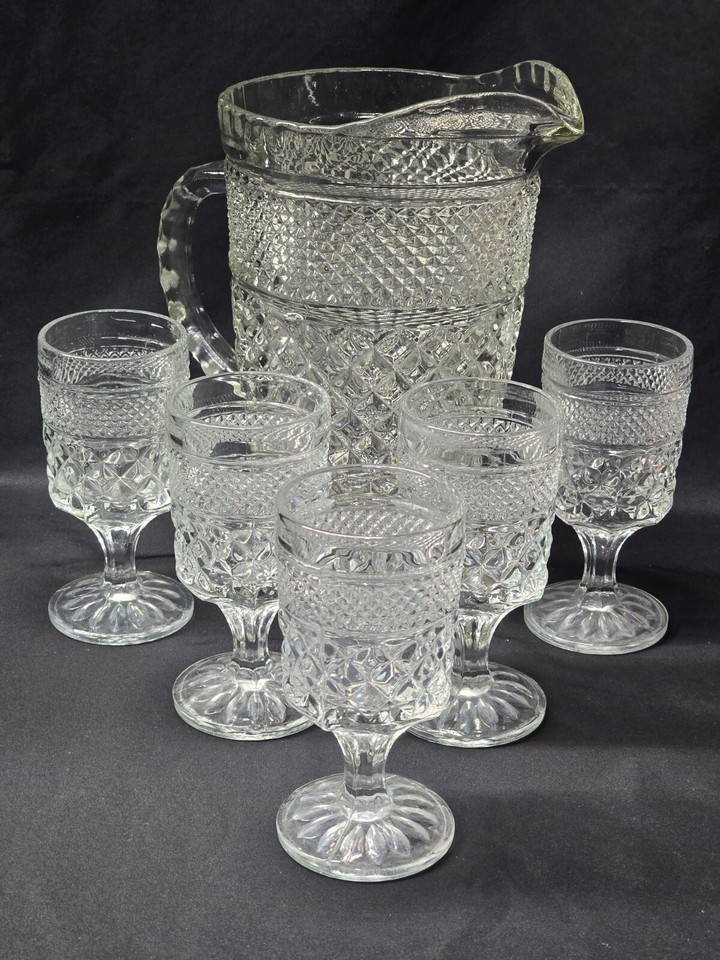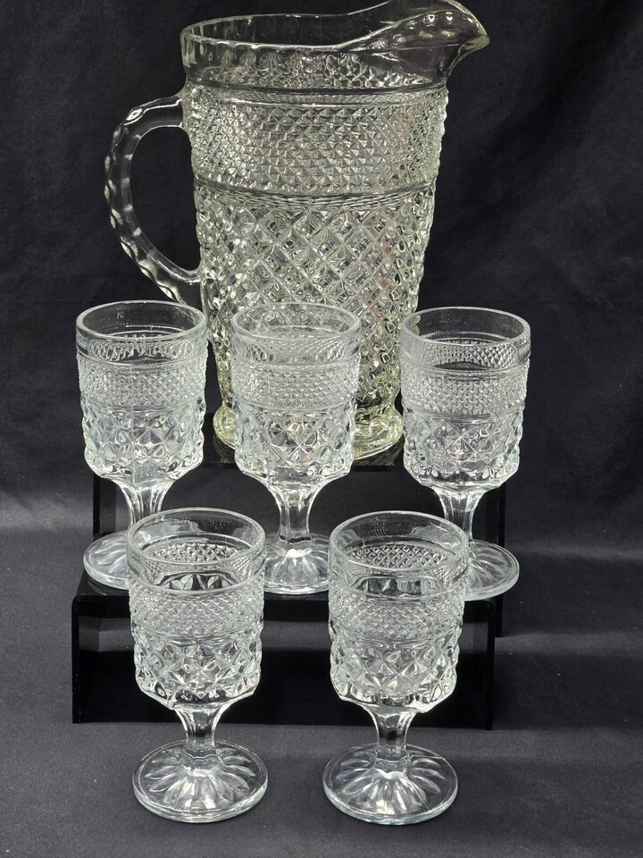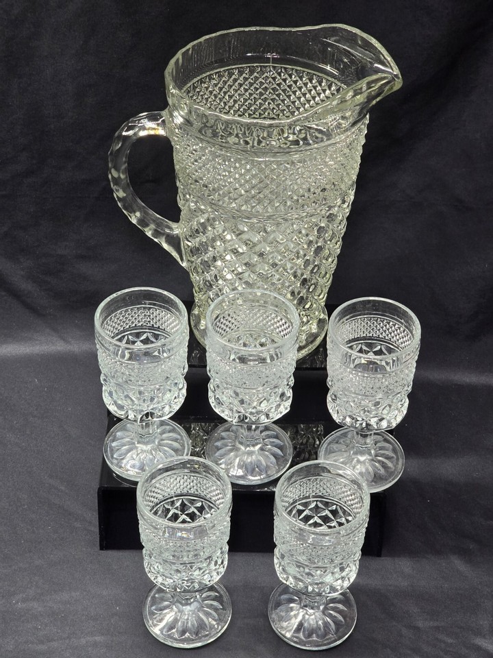 Vintage ANCHOR HOCKING 64 Ounce WEXFORD Pitcher And 5 Six-Ounce Juice Glasses