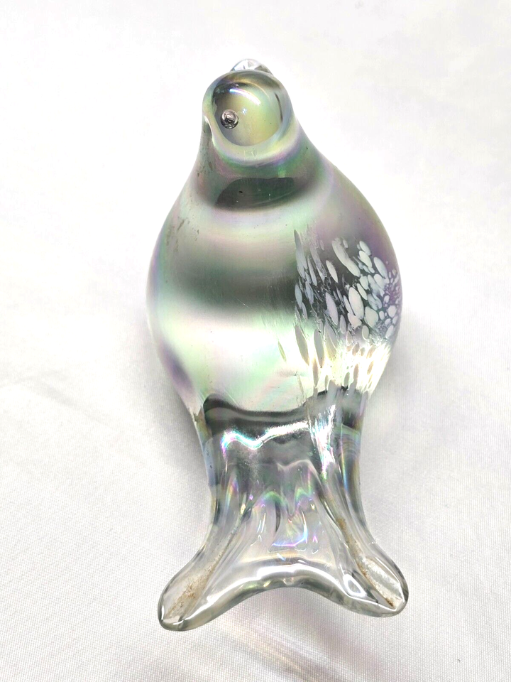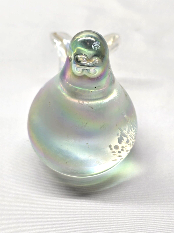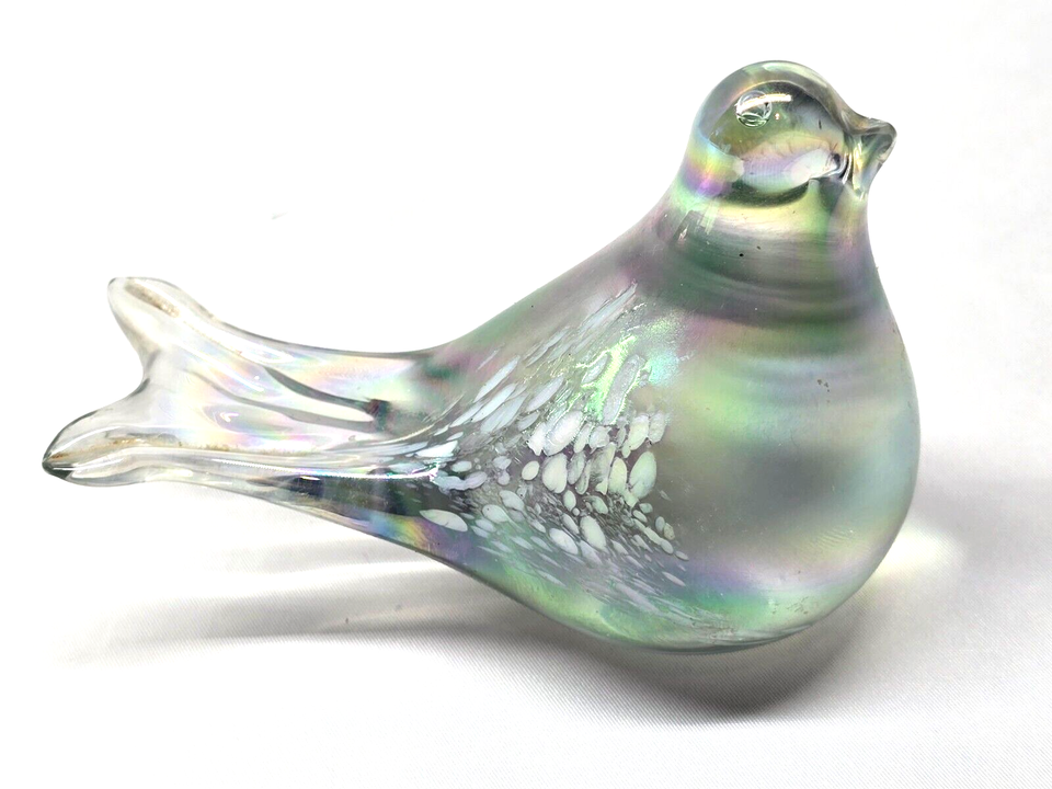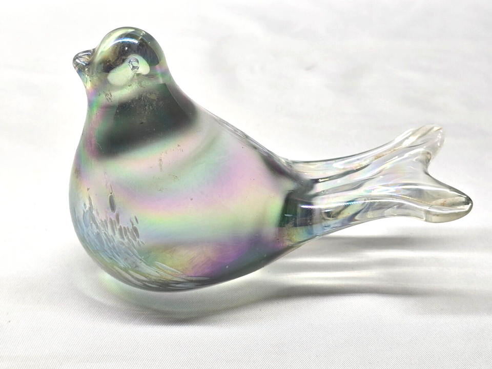 Vintage Hand Blown IRIDESCENT Bird Dove With Feathers Paperweight Figurine