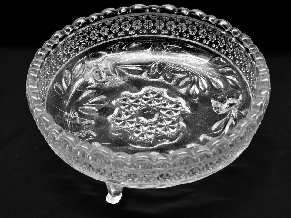 Antique Rose Point Band bowl set by Indiana Glass in excellent condition. Great clarity, no evidence of damage or wear. 2-piece set consists of a 5.5" bowl, and a 4" bowl. Great for berries, nuts, fruit and other small snacks. Circa 1913.