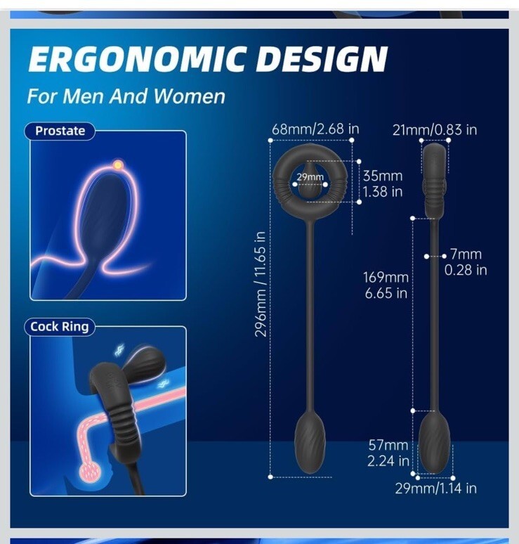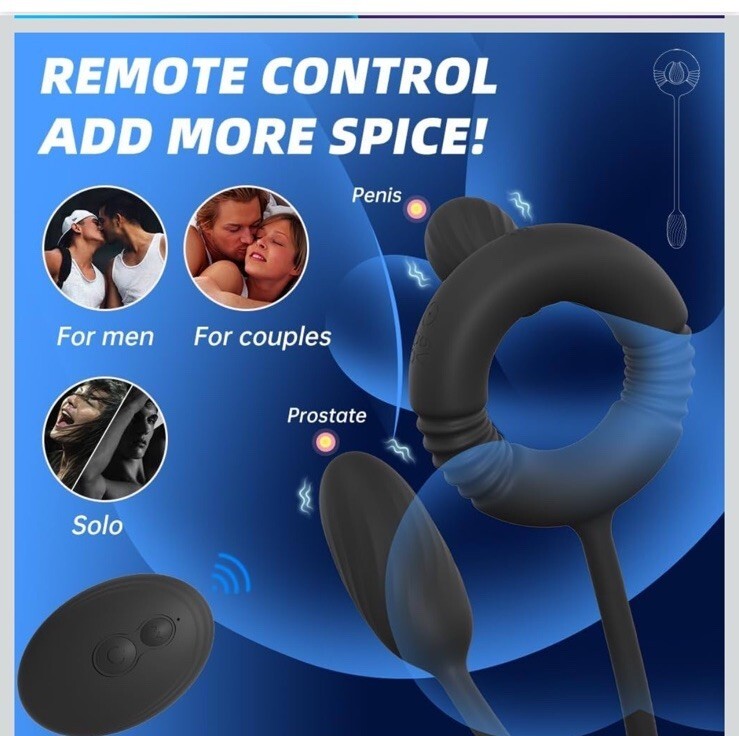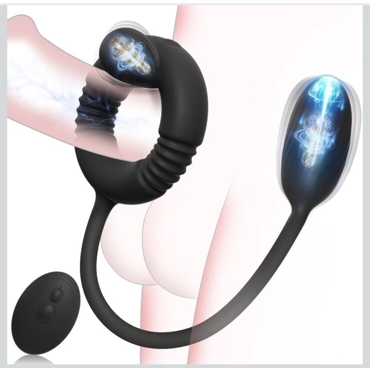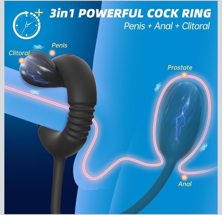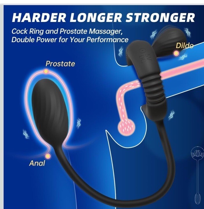 Thrusting Prostate Massager Sex Toy with Vibrating Cock Ring Taint Stimulator.