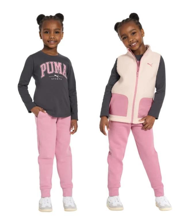 Puma Boys Girls Vest T-Shirt Jogger Purple Multicolor 3-Piece Set Elastic Waist