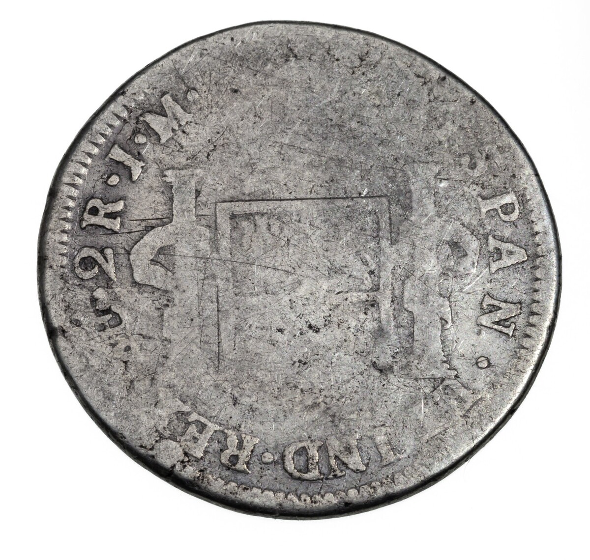 1774lime MJ Perou 2 Reals Silver Coin en tres bon etat, km 76