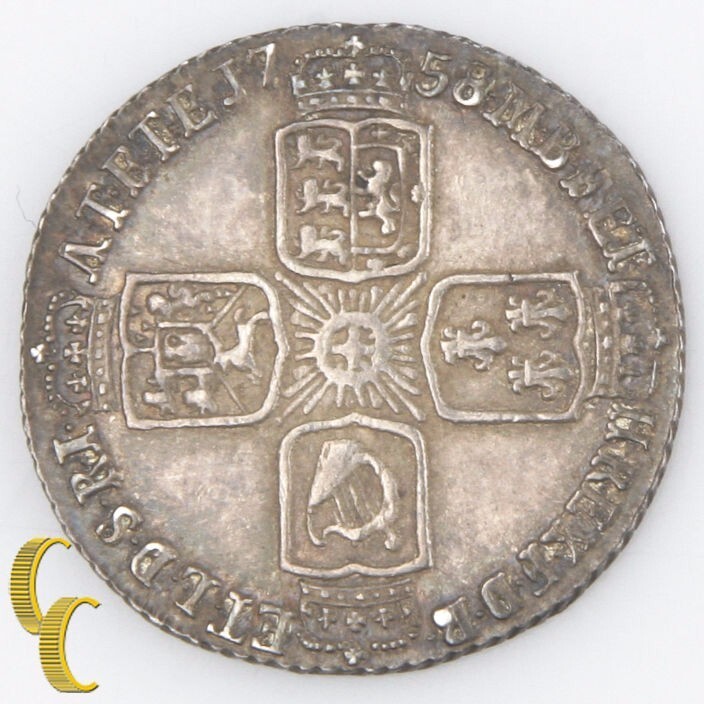 1758 Grande-Bretagne 6 pence Exrra Fine + XF + George II England Silver KM # 582.2